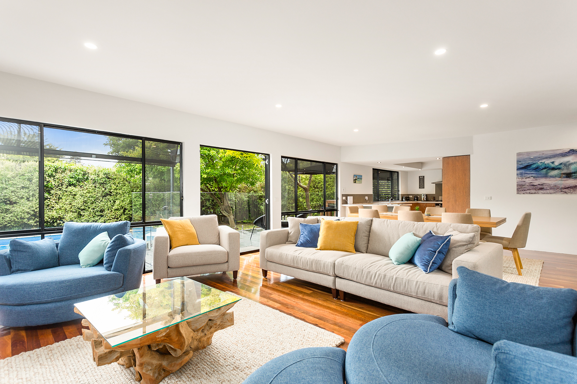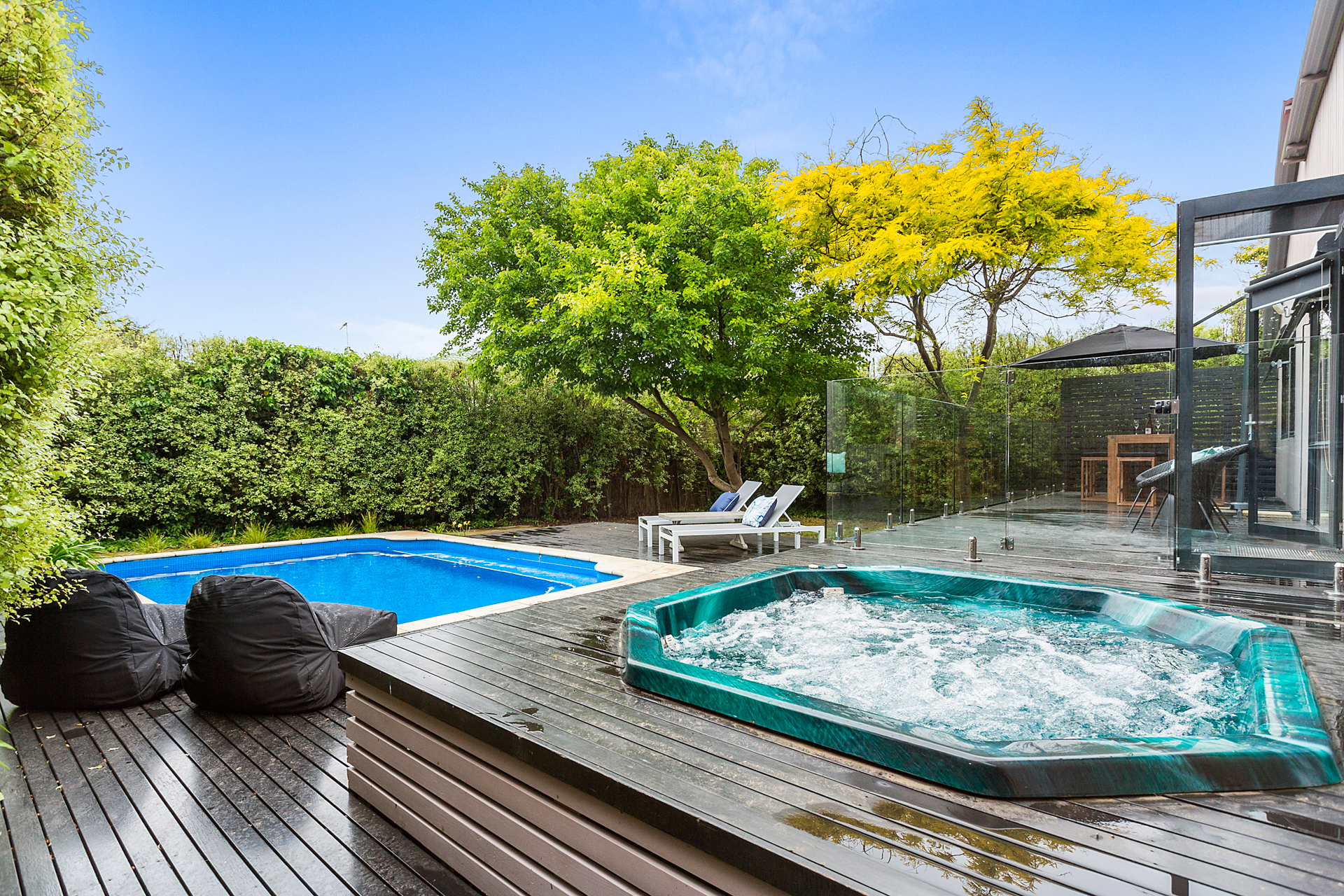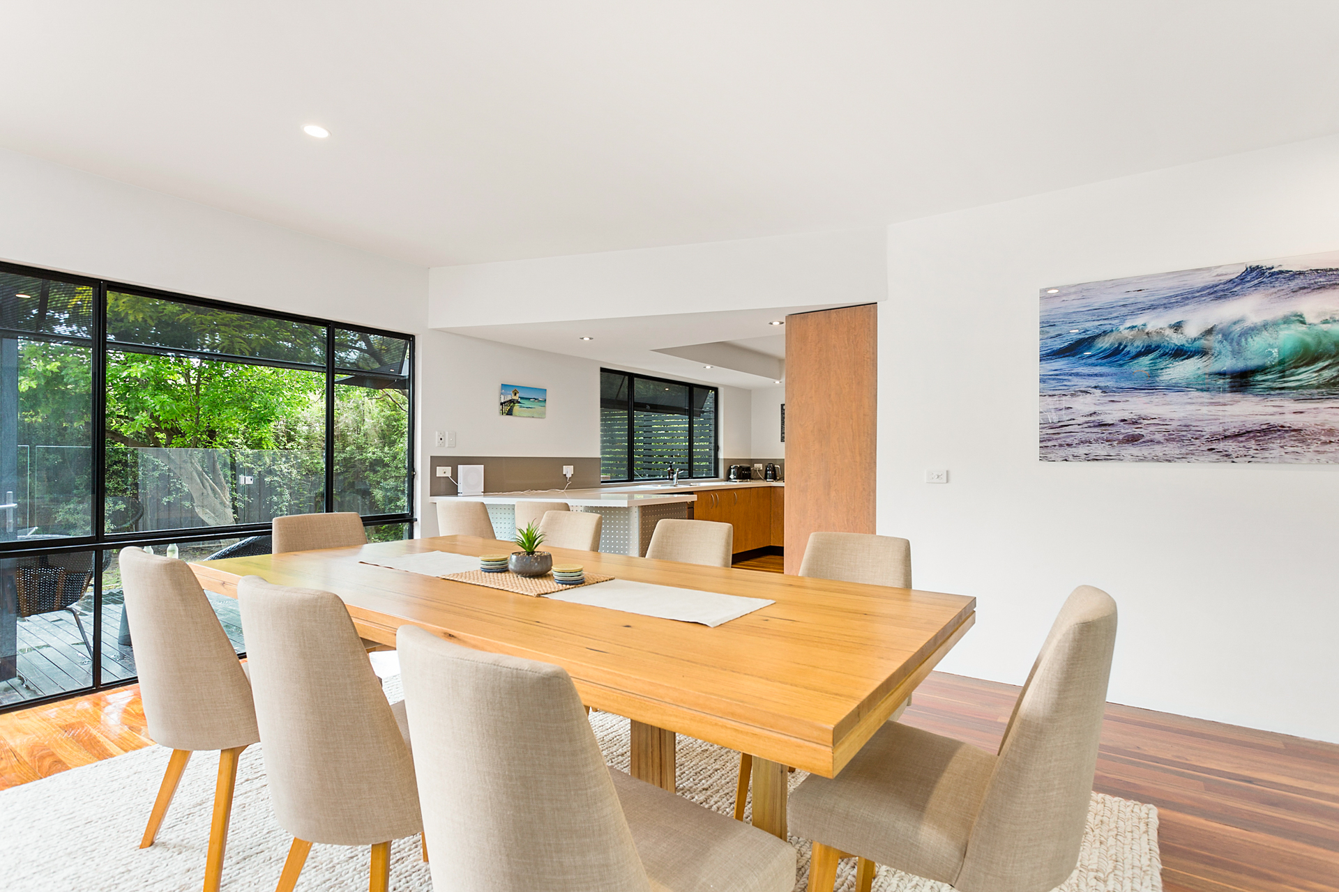 DESCRIPTIONRetreat 95 is the ideal in relaxed, indoor/outdoor living. The outdoor area is to envy with solar heated swimming pool, spa and relaxed seating areas so that you can enjoy the outdoor space. There is a large open planned kitchen, dining and living room that opens to a central outdoor alfresco room with an outdoor kitchen, comfy couches and a dining table. This spacious family home boasts 4 bedrooms, 3 bathrooms - one with a bath, 2 living rooms with large TVs, both with Foxtel IQ and DVD players, and Playstation4. There is also free WiFi. There's ducted heating/cooling throughout to make your stay comfortable at any time of year. There is a laundry with washing machine and clothes dryer, and you have use of the double garage which has a table tennis table, dart board and extra fridge. All of this within a short walk to the foreshore and the Sorrento Sailing Couta Club via Tuckey Track. BEDROOM CONFIGURATION - 4 BEDROOMS - SLEEP 10 PEOPLE 1st bedroom - king sized bed, WIR, ensuite, Telstra TV ie you can watch Netflix 2nd bedroom - king sized bed, BIR 3rd bedroom - queen sized bed, BIR, TV 4th bedroom - 2 x king single bunks ie sleeps 4 people Bed linen is included for all bookings, however you will need to bring your own towels, bath mats and hand towels (or these can be hired for an additional fee). Please note the solar heater in the pool is turned on during the months of November to April and requires the sun to be effective. We only rent to families or mature groups. Definitely no schoolies