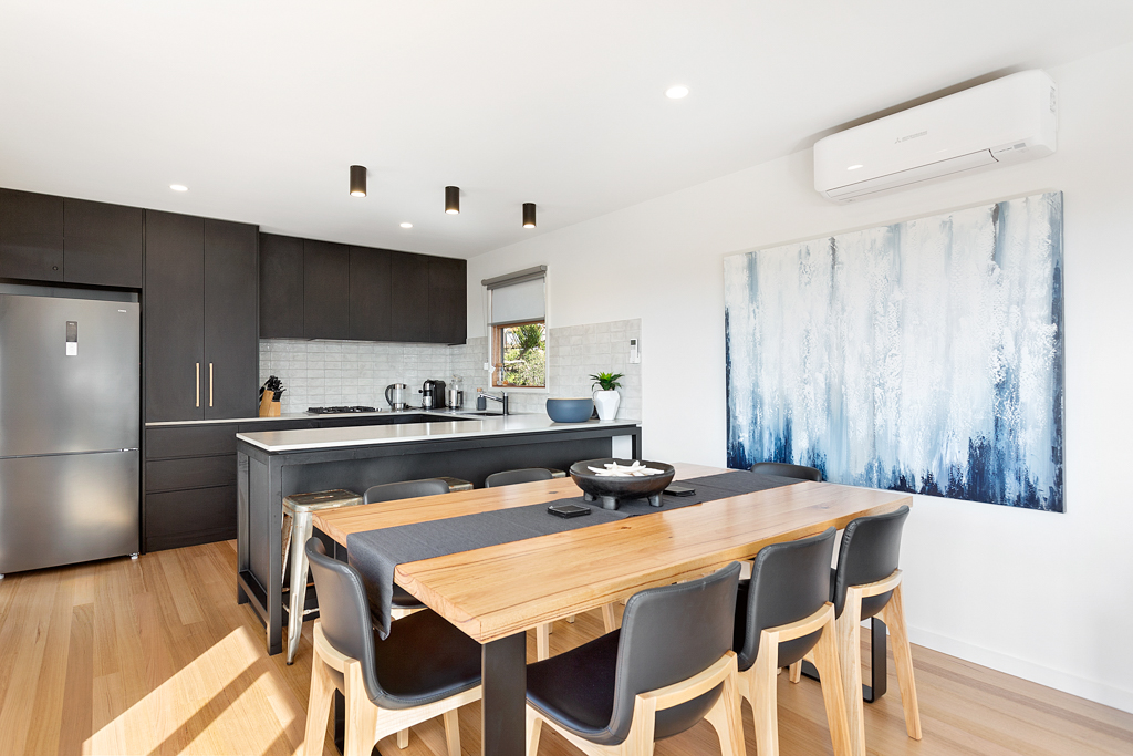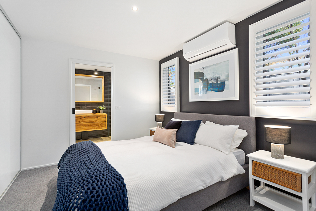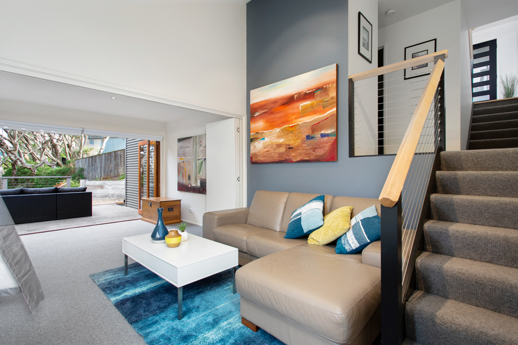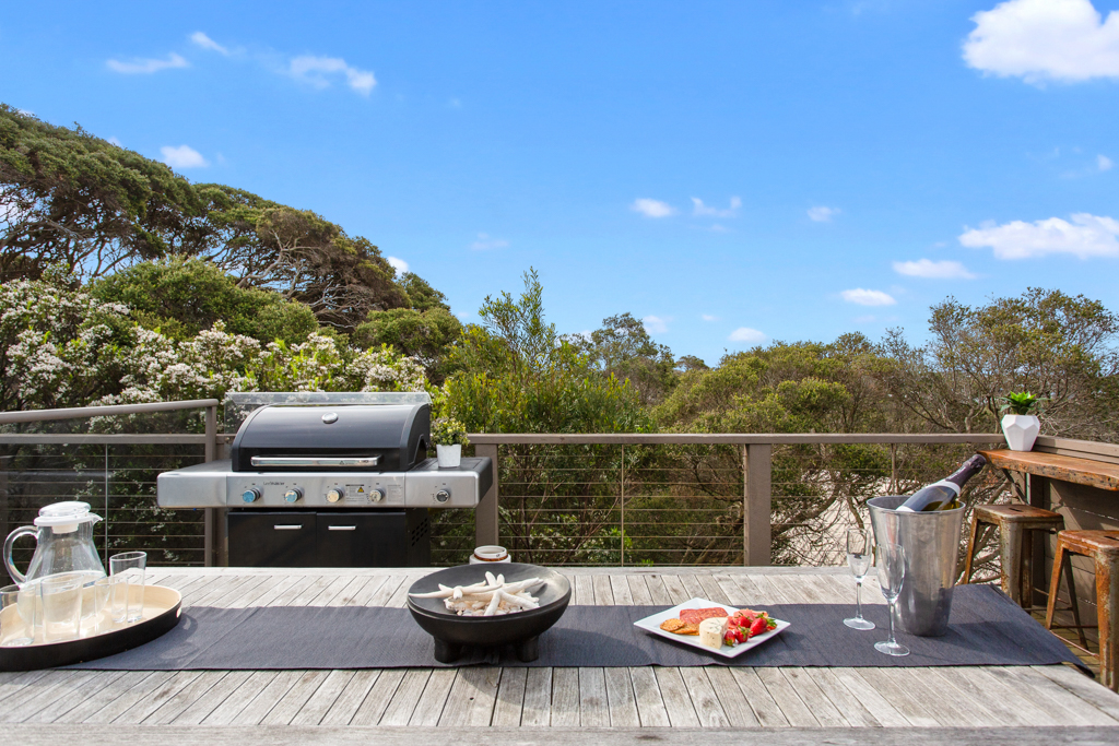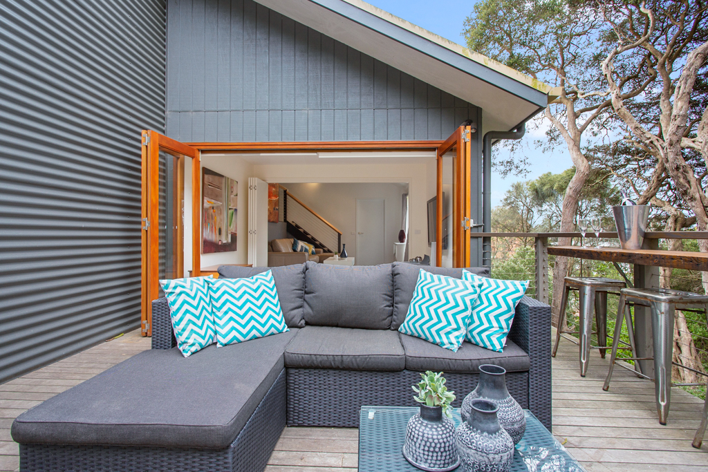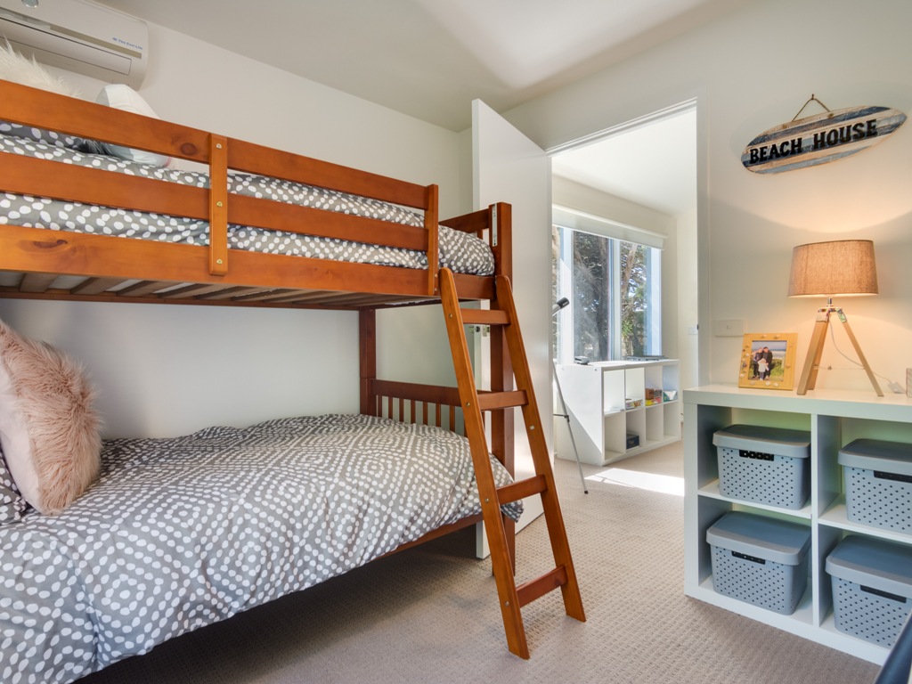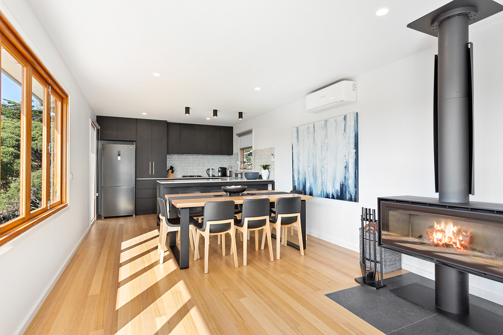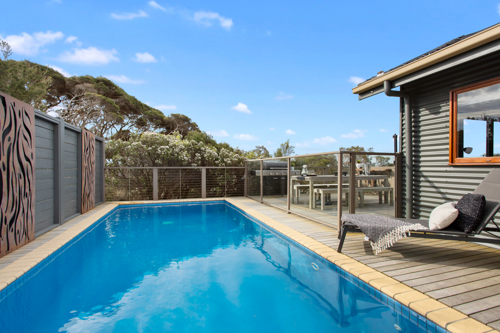 DESCRIPTIONWith just four doors to the entrance to the Koonya back beach, Serenity in the Sun is an elevated modern beach house with all of the modern comforts and beautiful views across the trees to the bay. The house has been designed to take full advantage of the northerly aspect and tranquil setting and enjoys a private solar heated swimming pool. It is also cosy for stays all year round, with 5 split system air con/heaters throughout and a lovely, brand new coonara wood fire upstairs to enjoy the chilly evenings. Newly renovated open plan living, dining and kitchen area with windows that allow for tree top views and a cool breeze, adjoining a private sun deck, with solar heated pool and BBQ area, perfect for relaxing whilst listening to the sounds of the ocean and birds chirping and even watching boats go past in the distance. New hostess kitchen complete with coffee machine and dishwasher and all essential items required for a wonderful holiday with family and friends. The home has new floorboards and carpets throughout. With 3 airconditioned bedrooms and 2 bathrooms (3 toilets) and 2 living/lounge areas over 3 levels there is room for everyone to relax, including a downstairs lounge TV area with flat screen TV and big glass doors that open out to another seperate outdoor deck area with the moonah trees. There is free WiFi and Netflix. Only minutes walk away from the gorgeous Koonya back beach and the Koonya General Store (Best coffees!) BEDROOM CONFIGURATION - 3 BEDROOMS - SLEEPS 8 PEOPLE Bedroom 1 - king sized bed, air conditioner, ensuite Bedroom 2 - queen sized bed, air conditioner Bedroom 3 - 2 sets of single bunks, air conditioner Distance to: Please note that we only rent to mature groups or families. No schoolies allowed. We do not permit pets at the property. Linen can be hired at an additional charge, price on application. Bed linen is included for all bookings of 7 nights or more. Please note the solar heater in the pool is turned on during the months of November to April and requires the sun to be effective.