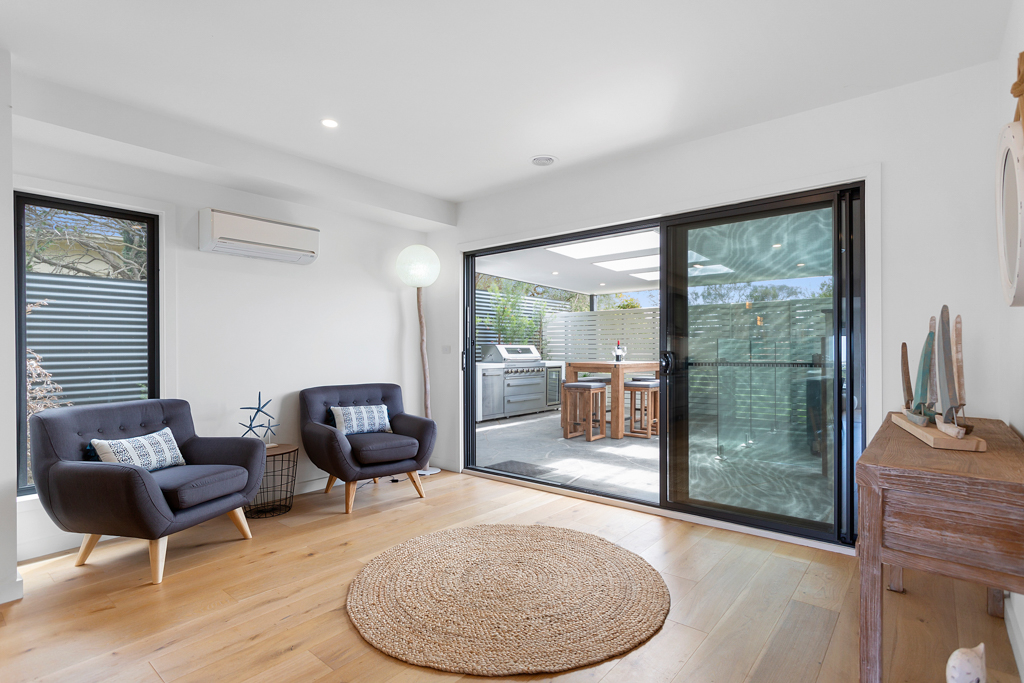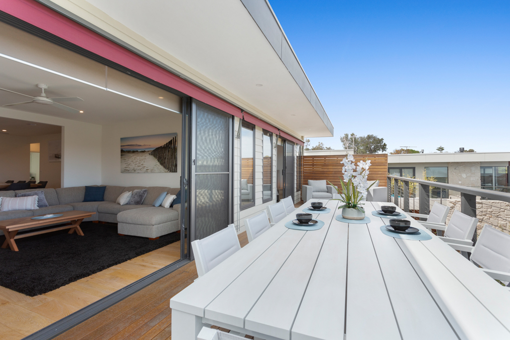 'Sunset on the Hill' is the ideal in luxury, modern living. The home is elevated to give beautiful bay glimpes over the trees, whilst being an easy walk to the Rye front beach and shops. It is also a short drive to the Peninsula Hot Springs, golf courses and wineries.
