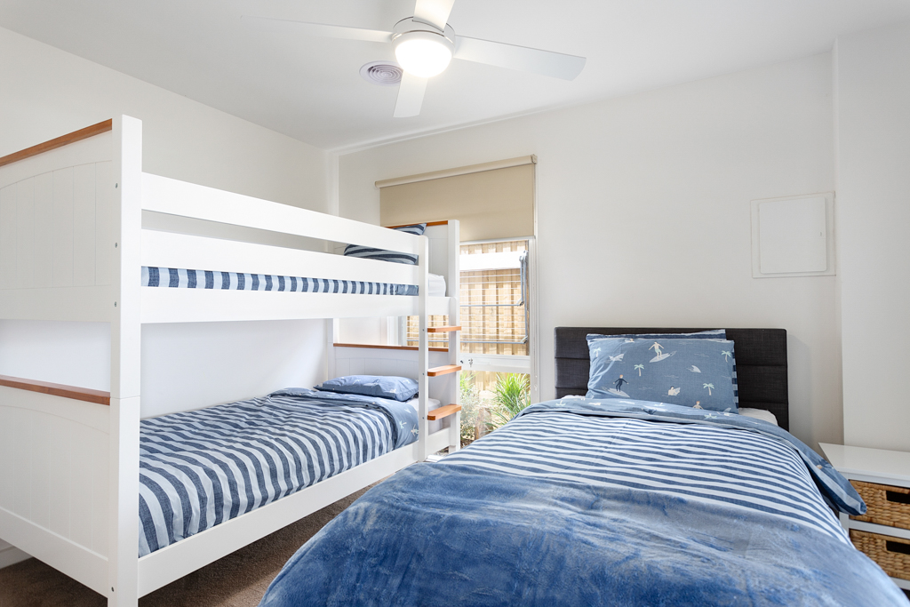 Downstairs - 4th bedroom - 1 set of king single bunks and 1 king single bed (ie sleeps 3 people)