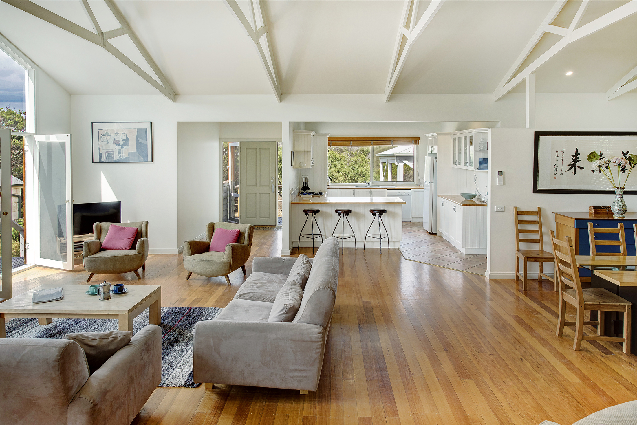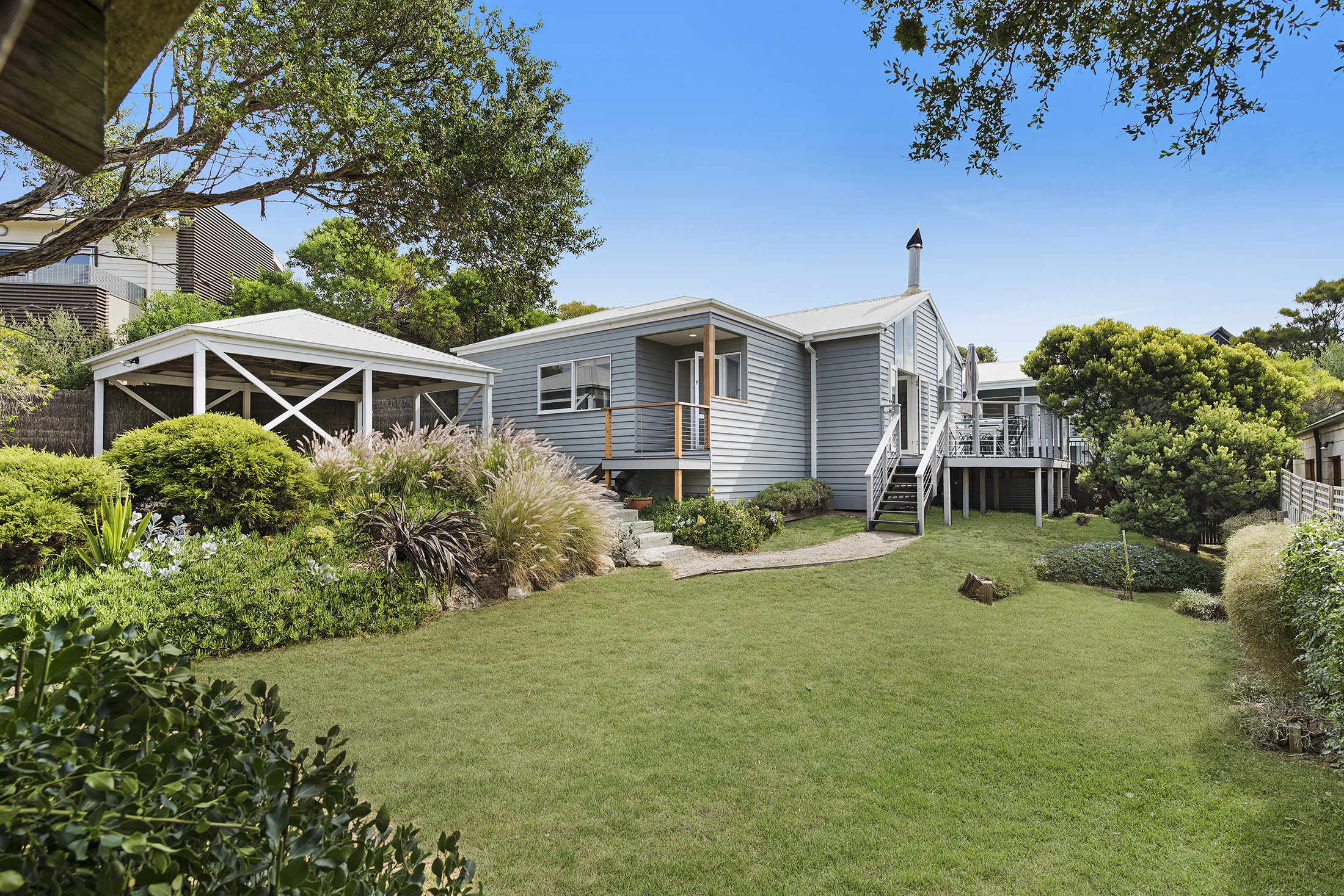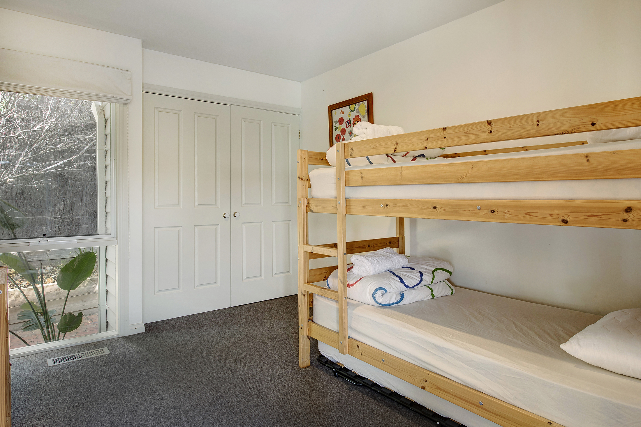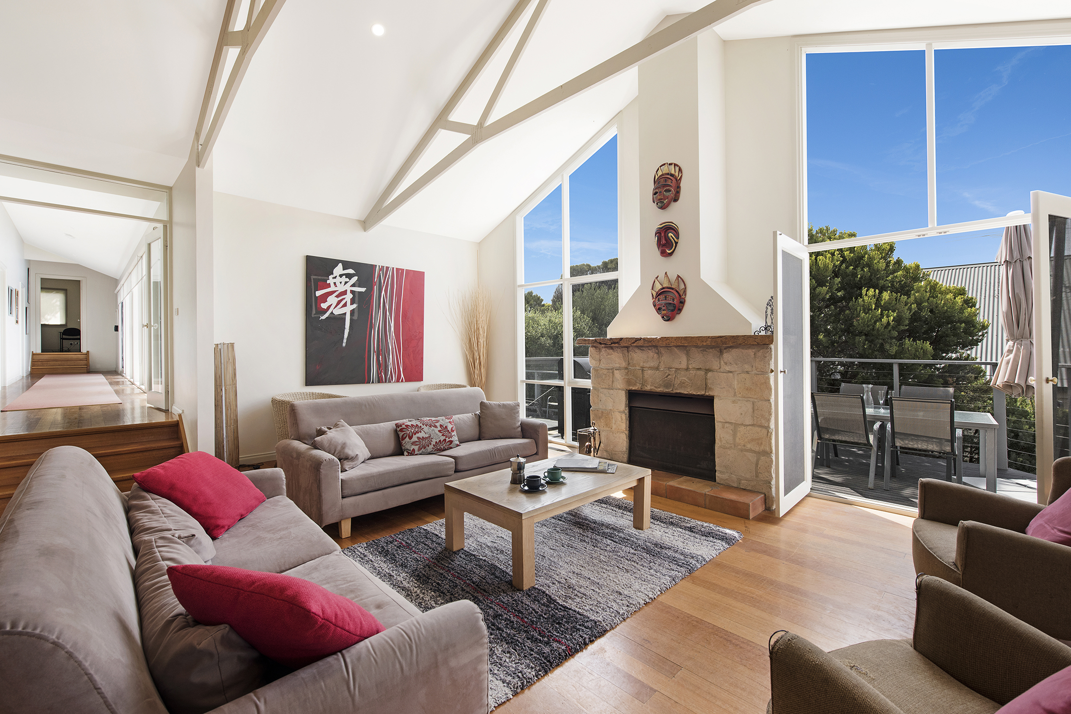 DESCRIPTIONLocated only minutes from the ocean side of the Peninsula, this stunning property is a short walk through the National Park to the spectacular "Centrals" Surf beach. In fact, "Four Seasons" is literally one door in from the entrance to this beach. There is a beautiful swimming pool which is mineral rich and salt-chlorinated with solar heating (*you can elect to have the pool gas heated to 32 degrees for an additional $200 for a weekend getaway or stays up to a week, on request) and is surrounded by a huge outdoor decking area complete with sun lounges to relax and make the most of the magnificent Mornington Peninsula lifestyle. As soon as you enter the front door, you will be welcomed by light and a spacious open plan living/dining area and kitchen with all the essentials you require to escape the outside world and relax. There is an air conditioner in the main living room, ducted heating throughout and it even has a fire place for cozy winter holidays. With a choice of 4 bedrooms, there is plenty of room to spread out. The main bedroom is located at the rear of the property and features its own sitting area, TV, and deluxe ensuite bathroom complete with spa bath and private balcony overlooking the pool. Or head down towards the front of the house where the pool greets you from every window, with a choice of three bedrooms, each sharing the main bathroom with separate toilet. All of this and only minutes to the Sorrento Shopping strip and surrounded by National Parks, golfing, the hot springs, and beaches on either side. Come and enjoy all the Peninsula has to offer! There's even free WiFi. BEDROOM CONFIGURATION - 4 BEDROOMS - SLEEPS 9 PEOPLE We only rent to families or mature groups. No schoolies allowed. The property is fully fenced and private. As a bonus, all bed linen and bath towels are included for your booking. * Please let us know when booking if you would like to pay the extra $200 to have the pool gas heated.