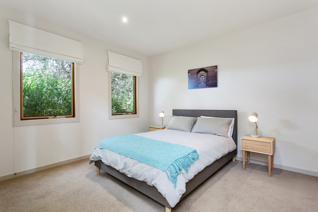 BEDROOM CONFIGURATION - 5 BEDROOMS - SLEEPS 9 PEOPLEUpstairs - master bedroom - king sized bed, WIR, ensuite (large double shower) Downstairs - 5th bedroom (this is a very small room) - 1 x single bed Linen can be hired at an additional charge, price on application. Bed linen is included for all bookings of 7 nights or more. Please note the solar heater in the pool is turned on during the months of November to April and requires the sun to be effective. We only rent to families or mature groups. Definitely no schoolies!
