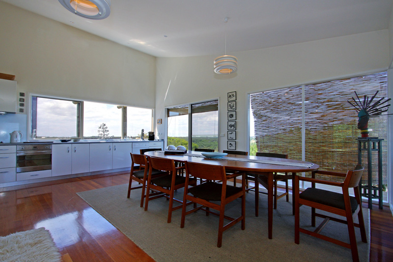 The large air conditioned living room has a wall of windows for you to look out at the ocean. There's a plasma TV with DVD, a huge modular leather sofa with plenty of books and games for your enjoyment. The modern kitchen has dishwasher, coffee machine (bring your own coffee beans), milkshake maker and a dining table that seats 8. There is free WiFi.