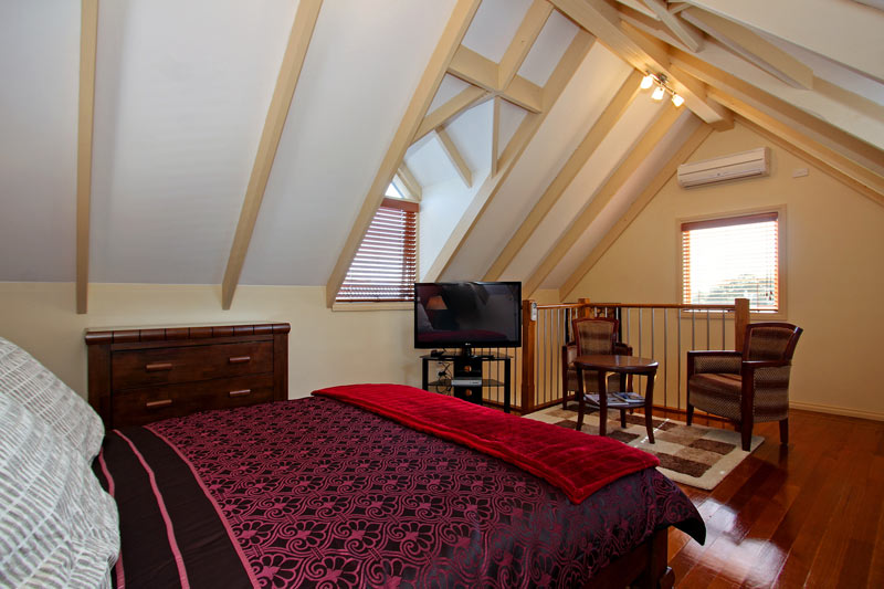 There is a fully equipped kitchen (with Caffitaly coffee machine), a lovely lounge area (with 2 fold out couches that could sleep up to 2 children), a huge 50" plasma TV (with Foxtel - sports and movie packages). Then upstairs is a large private bedroom, with TV. There is air conditioning both upstairs and downstairs.