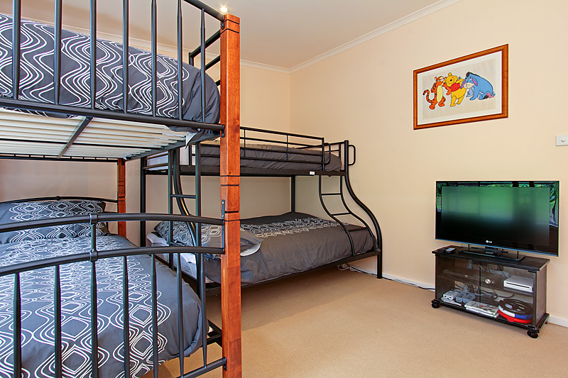 3rd bedroom - 1 x single bunks and 1 x double bunks (ie double bed on the bottom with a single bed on the top), BIR. This room has a TV with DVD and Wii game console with Wii games.