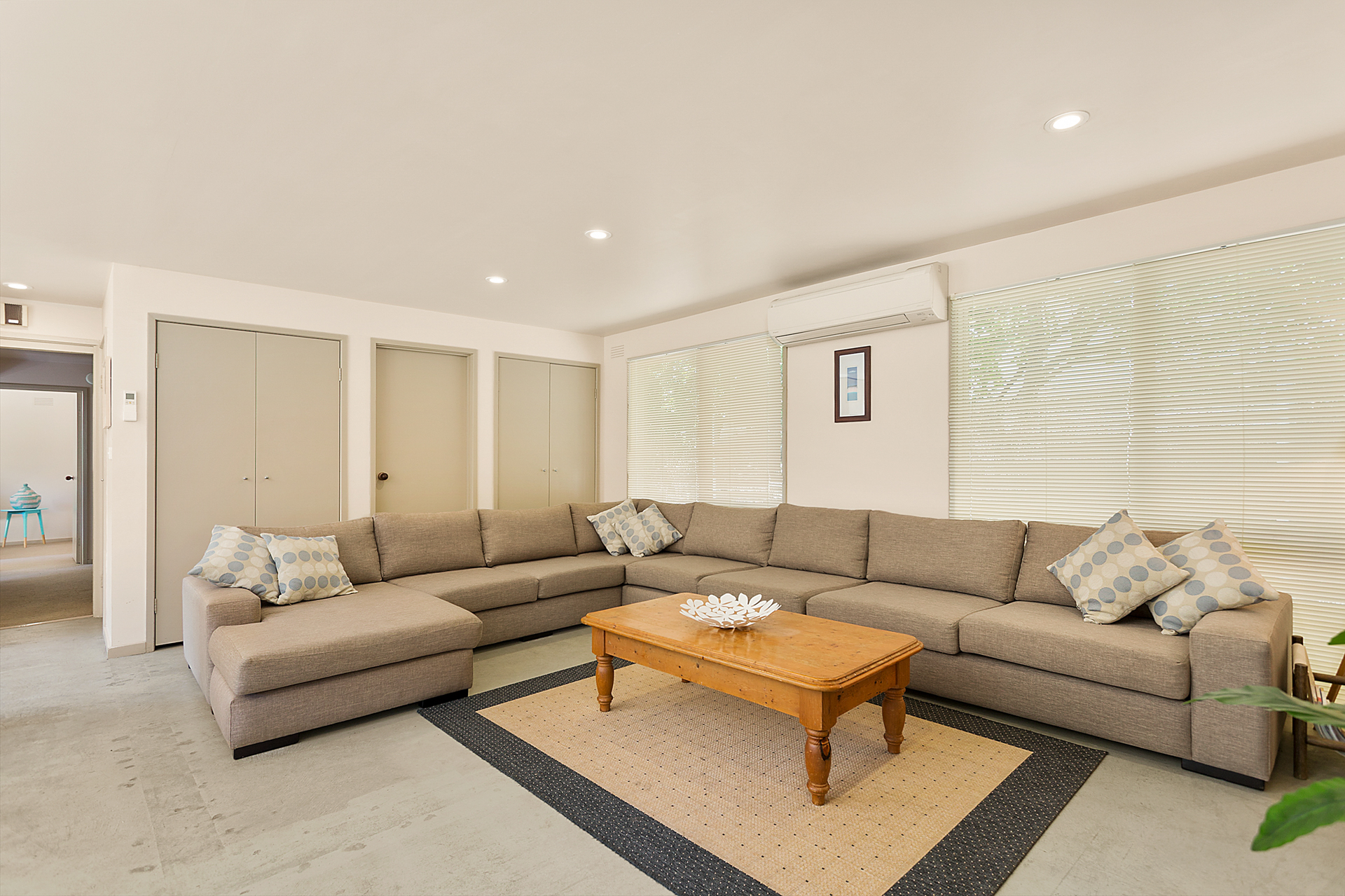 3rd bedroom - 2 sets of bunks (ie sleeps 4 people), split system air con/heater. One set of bunks are single beds and the set of bunks are king single beds.