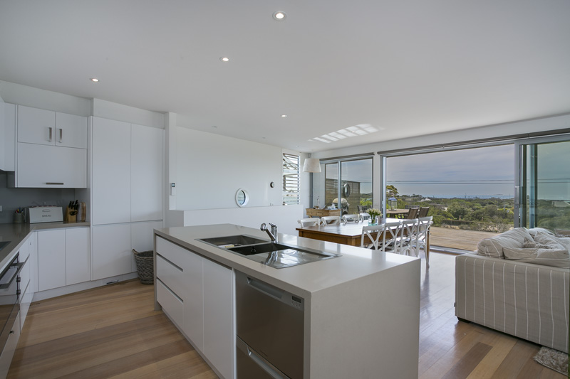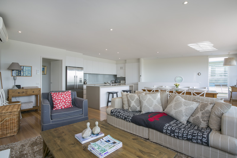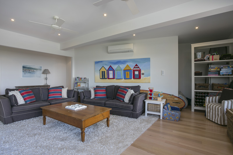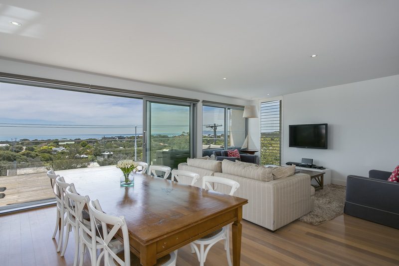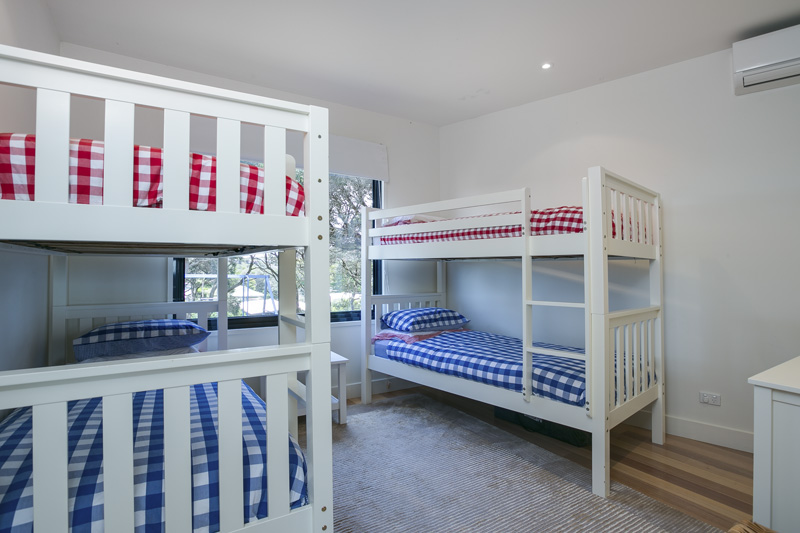 DESCRIPTIONSeaview Retreat is the ideal in luxury, modern living. This fantastic family home has 4 bedrooms, 2 living rooms (both with large TVs, DVD players and stereo with ipod dock), a new kitchen (fridge with ice/water dispenser, coffee machine, microwave and dishwasher) and dining area. The open planned living/kitchen/dining area upstairs opens out to a large deck with amazing views directly over the bay. You cannot help but relax and unwind when you are sitting out enjoying the sun (or you can use the remote control awnings to provide some shade). There's ducted heating, air conditioning and ceiling fans. A fully equipped laundry with washing machine, clothes dryer, ironing facilities and ducted vacuum. The house is well zoned for 2 families with 2 bedrooms, a living room and bathroom upstairs and then 2 bedrooms, a living room and bathroom downstairs. The outdoor area is another highlight, with a children's haven set down some steep steps into the backyard. It features a cubby house with slide over it and sand pit, and a large inground trampoline. All of this is tucked privately behind remote control security gates and is alarm protected. BEDROOM CONFIGURATION - 4 BEDROOMS - SLEEPS 12 PEOPLE UPSTAIRS 1st bedroom - king bed, BIR, air conditioner, opens out to private deck 2nd bedroom - 1 set of bunks, 1 single bed and a trundle bed, BIR, air conditioner DOWNSTAIRS 3rd bedroom - king bed, WIR, air conditioner 4th bedroom - 2 sets of bunks We only rent to families or mature groups. Sorry, definitely no schoolies! Linen can be hired at an additional charge, price on application. Bed linen is included for all bookings of 7 nights or more.