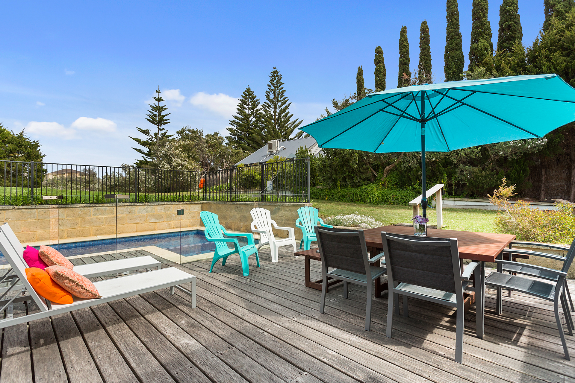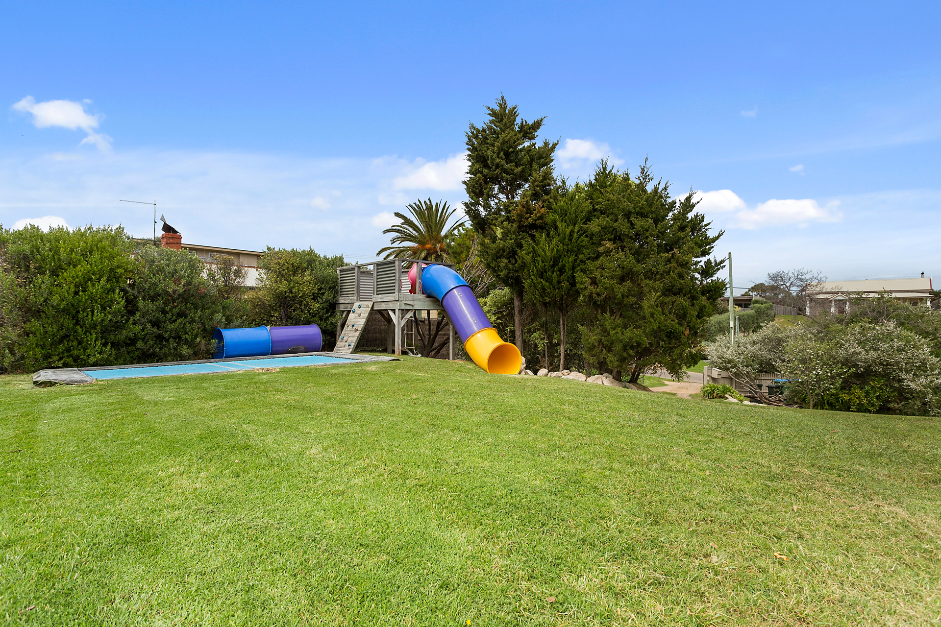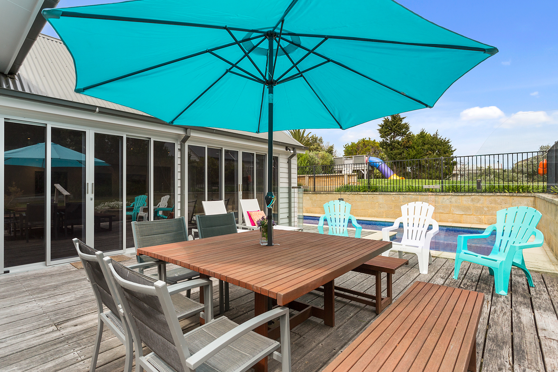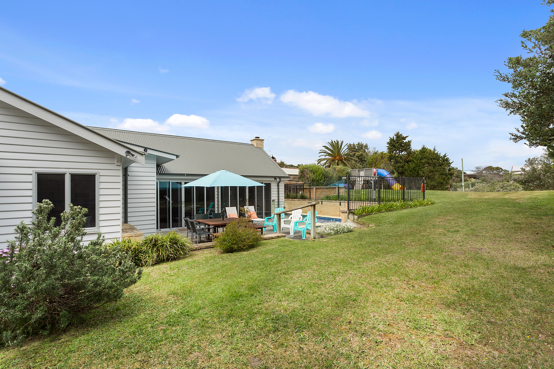 DESCRIPTIONYour holiday starts as soon as you enter this beautiful Sorrento property. Winter or summer, this property provides luxurious accommodation for many occasions; weddings, family reunions, girls weekends or just a weekend away. Sleeping 12 people (no bunks) across four bedrooms, this property is perfect for up to two families. A short walk to the Sorrento shops or the Sorrento front beach or the beautiful coastal tracks are at your doorstep. You may not need your car for the entire time you are there. This property is also a short walk to the Sorrento to Queenscliff ferry. This property boasts two separate and expansive living rooms. Both equipped with Smart TV’s overlooking the two respective outdoor entertaining areas. This property offers an open fireplace and a large dining table (seating 12). The first deck is equipped with an outdoor dining table and sun lounges overlooking the pristine solar heated pool and gas heated spa. The second deck is equipped with a built in BBQ and an additional outdoor dining table and outdoor lounge area. This luxurious Sorrento house boasts four generously sized bedrooms, comfortably sleeping 12 people and three bathrooms including three showers and a spa bath each with heated tiles. No luxury has been forgotten - WiFi, Smart TVs, ducted vacuum, dishwasher, coffee machine, ice-dispensing fridge, full laundry facilities, granite benchtops, hydronic heating, open fire, air conditioning, heated tile areas, spa bath, ceiling fans and an inground trampoline and large grassed area for the children. BEDROOM CONFIGURATION - 4 BEDROOMS - SLEEPING 12 PEOPLE Master bedroom with king size bed, TV, WIR, air conditioning/heating and ensuite 2nd bedroom with a king bed and a single bed and a ceiling fan 3rd bedroom with 2 single beds and a ceiling fan 4th bedroom with 5 single beds, air conditioning BED LINEN, BATH AND POOL TOWELS ARE PROVIDED FOR ALL BOOKINGS. We only rent to families, or mature groups. Sorry, no "schoolies". Please note the solar heater in the pool is turned on during the months of November to April and requires the sun to be effective.
