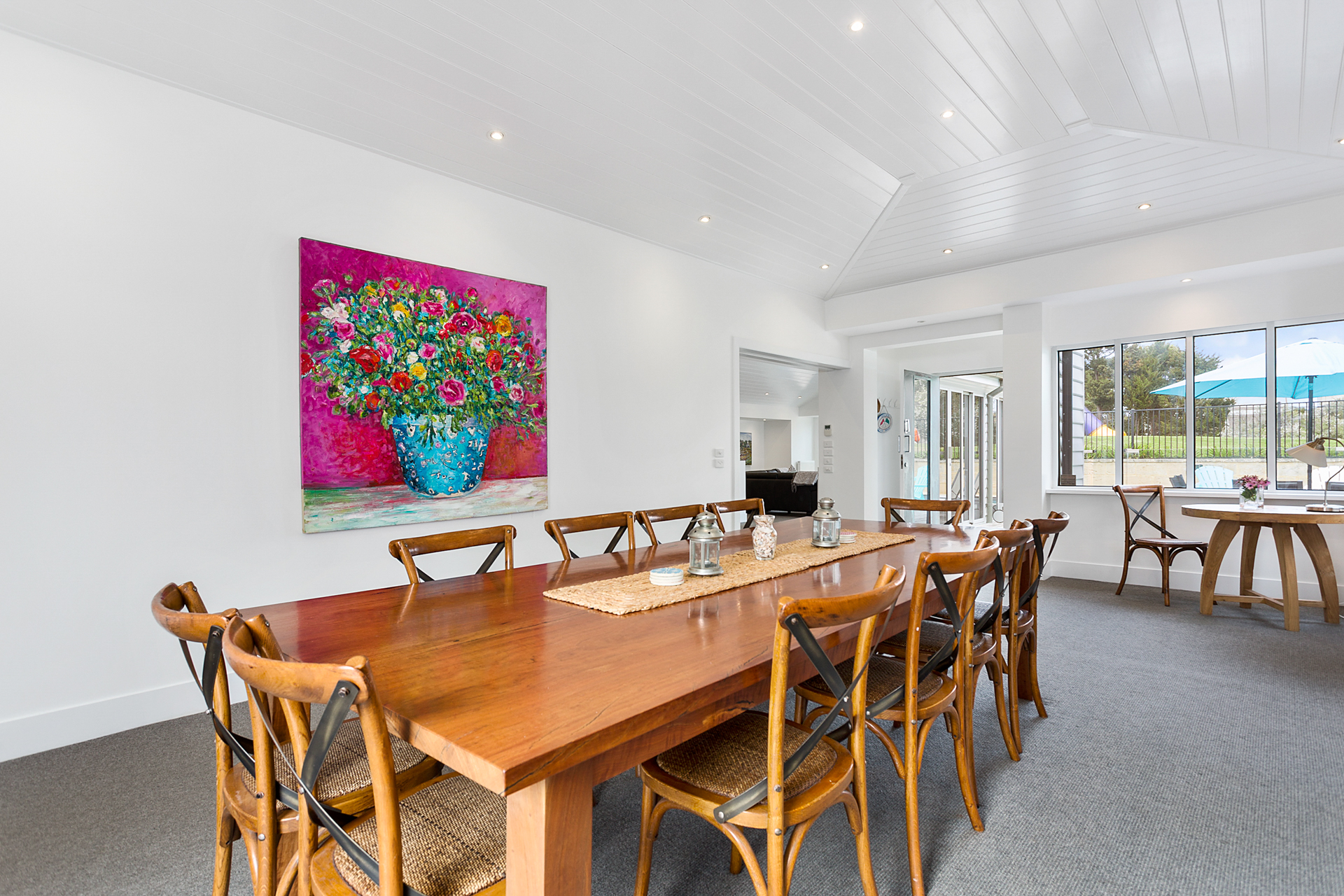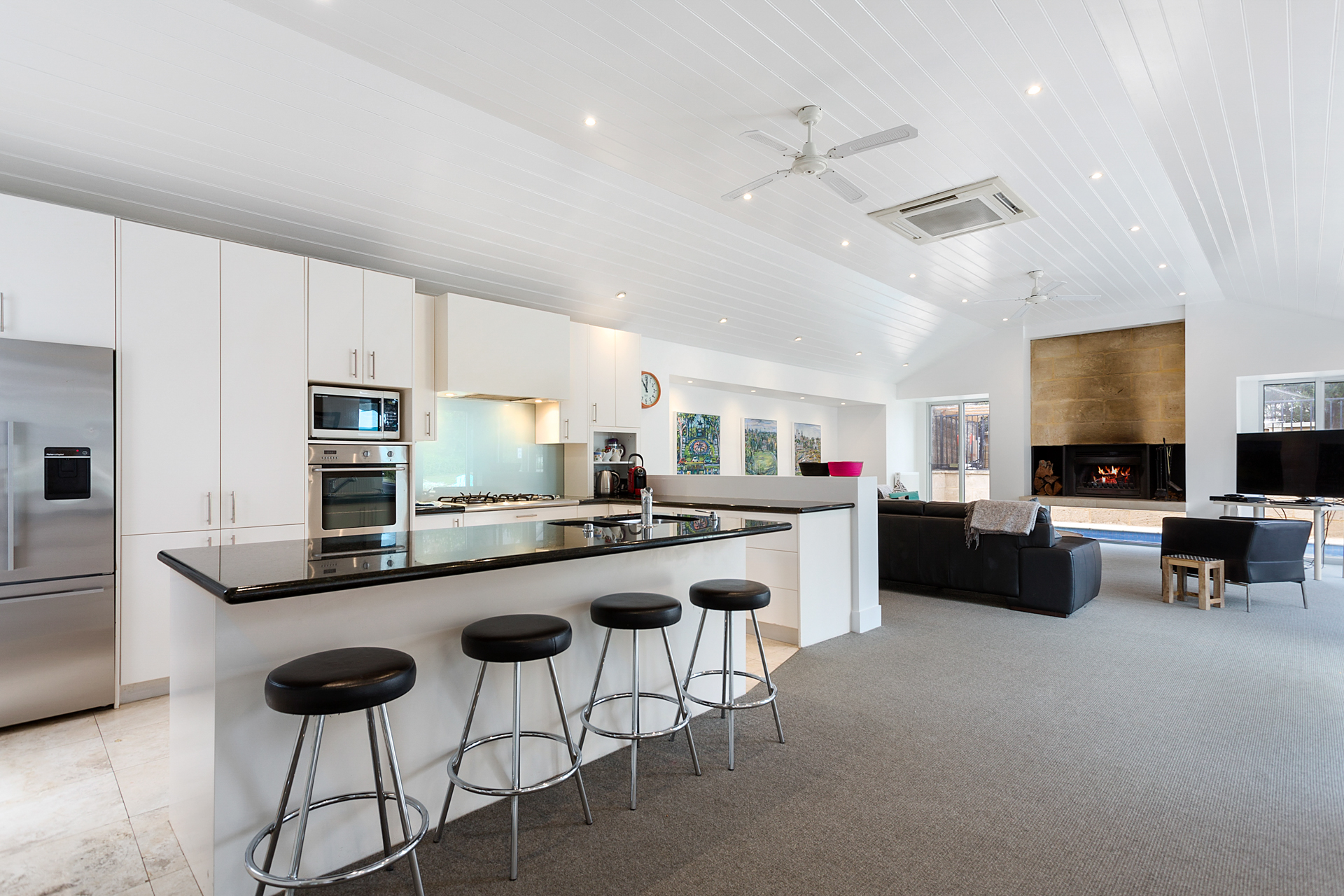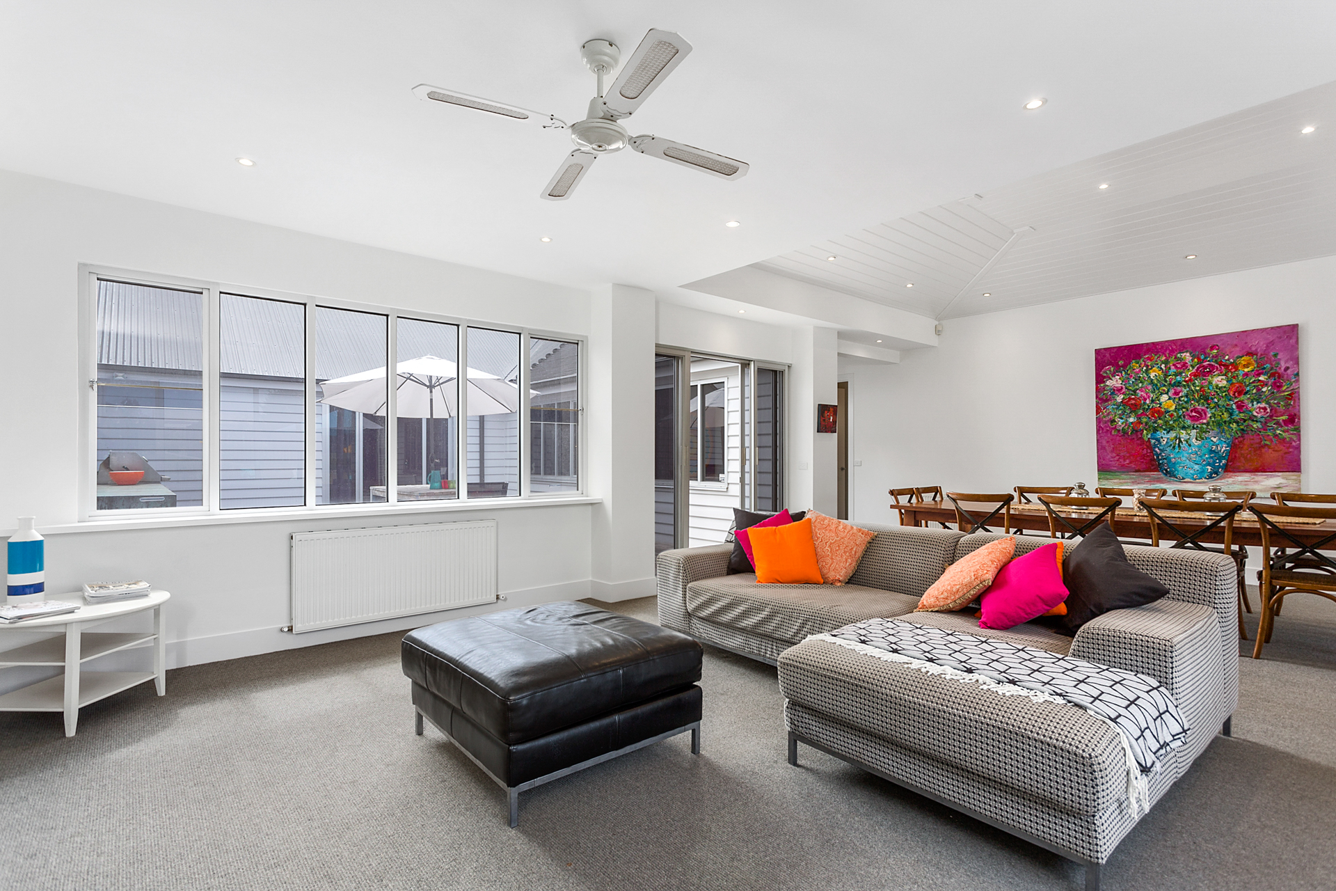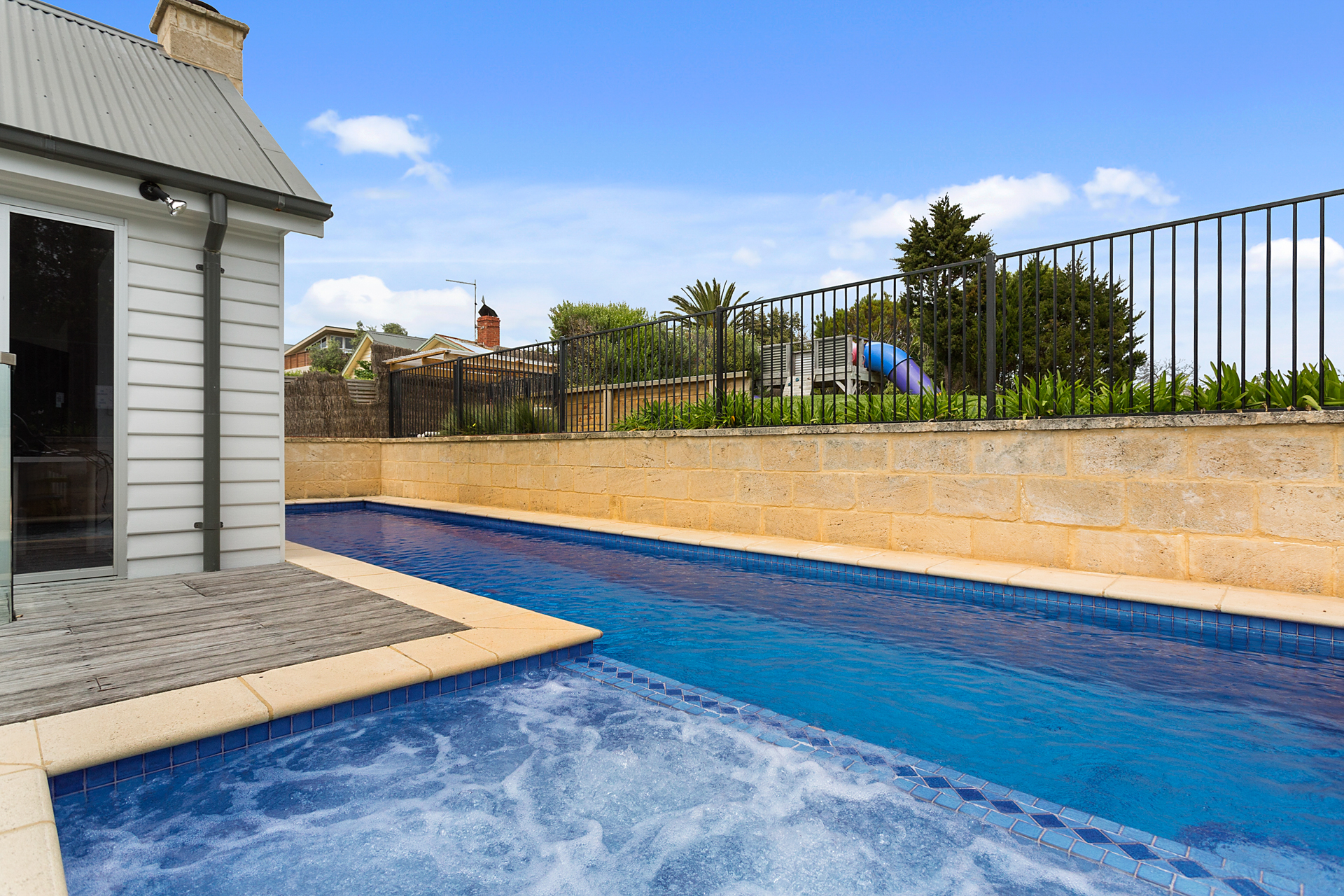 DESCRIPTIONYour holiday starts as soon as you enter this beautiful Sorrento property. Winter or summer, this property provides luxurious accommodation for many occasions; weddings, family reunions, girls weekends or just a weekend away. Sleeping 12 people (no bunks) across four bedrooms, this property is perfect for up to two families. A short walk to the Sorrento shops or the Sorrento front beach or the beautiful coastal tracks are at your doorstep. You may not need your car for the entire time you are there. This property is also a short walk to the Sorrento to Queenscliff ferry. This property boasts two separate and expansive living rooms. Both equipped with Smart TV’s overlooking the two respective outdoor entertaining areas. This property offers an open fireplace and a large dining table (seating 12). The first deck is equipped with an outdoor dining table and sun lounges overlooking the pristine solar heated pool and gas heated spa. The second deck is equipped with a built in BBQ and an additional outdoor dining table and outdoor lounge area. This luxurious Sorrento house boasts four generously sized bedrooms, comfortably sleeping 12 people and three bathrooms including three showers and a spa bath each with heated tiles. No luxury has been forgotten - WiFi, Smart TVs, ducted vacuum, dishwasher, coffee machine, ice-dispensing fridge, full laundry facilities, granite benchtops, hydronic heating, open fire, air conditioning, heated tile areas, spa bath, ceiling fans and an inground trampoline and large grassed area for the children. BEDROOM CONFIGURATION - 4 BEDROOMS - SLEEPING 12 PEOPLE Master bedroom with king size bed, TV, WIR, air conditioning/heating and ensuite 2nd bedroom with a king bed and a single bed and a ceiling fan 3rd bedroom with 2 single beds and a ceiling fan 4th bedroom with 5 single beds, air conditioning BED LINEN, BATH AND POOL TOWELS ARE PROVIDED FOR ALL BOOKINGS. We only rent to families, or mature groups. Sorry, no "schoolies". Please note the solar heater in the pool is turned on during the months of November to April and requires the sun to be effective.