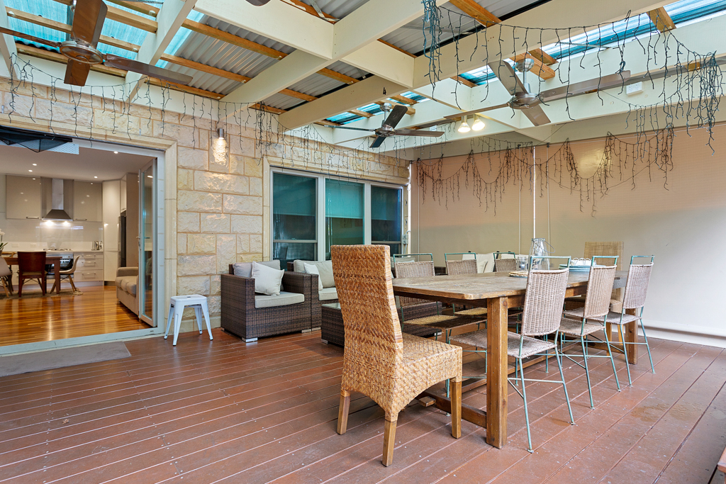 The outdoor area is a haven for relaxing as there are couches, ceiling fans, patio heaters, a dining table as well as a BBQ and a Weber. The kitchen is well equipped with dishwasher, microwave and coffee machine. The main bathroom has a bath.